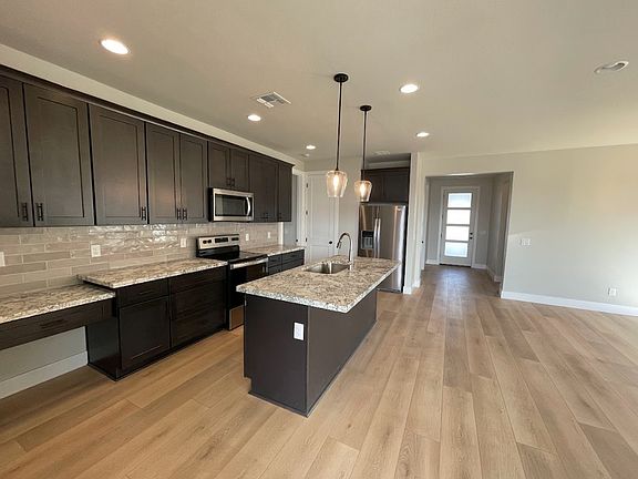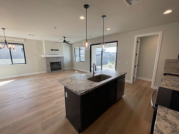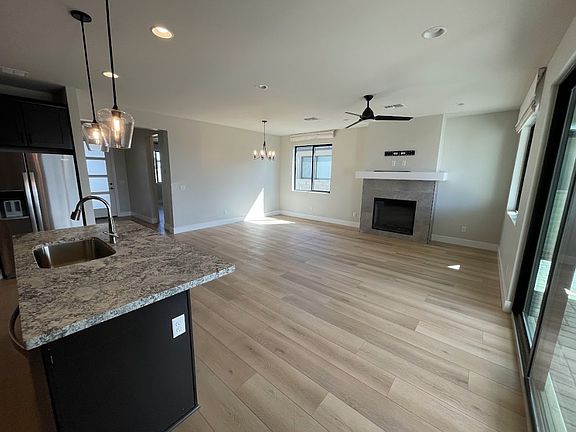 Prescott Valley Model Home in the Jasper 7 Community! This stunning 3-bedroom, 2-bathroom single-level home with a 2-car garage offers 1,434 sq. ft. of thoughtfully designed living space. The open-concept kitchen features quartz countertops, a large island, a custom tile backsplash, and stainless steel appliances, including a new refrigerator, dishwasher & microwave. Enjoy beautiful wood floors, ceiling fans & custom model home upgrades throughout. The spacious living room with a fireplace flows into a formal dining area and a walk-out covered patio, perfect for relaxing. The primary suite boasts a large bathroom with a walk-in shower & dual vanity sinks. Two additional bedrooms, an indoor laundry room with a stackable washer & dryer, and a low-maintenance yard complete this move-in-ready home. Located in a great community with fantastic amenities! Tenant Pays: Water & Utilities Landlord Pays: Trash, Internet & HOA Fee