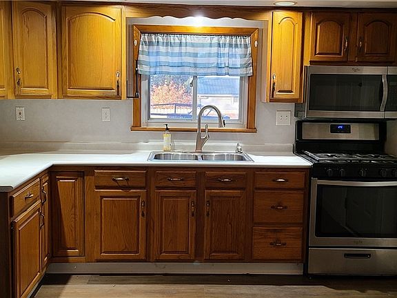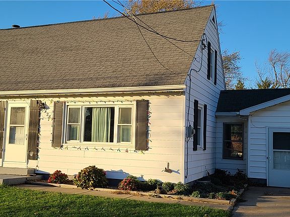 Welcome to 5128 Olympic Ave! This 4 bedroom/2 full bath cape cod is located in the Orchard Park School District. Close to all conveniences and a short walk to Highmark Stadium. The first floor features two good sized bedrooms and full bath with whirlpool tub. The kitchen is equipped with newer gas range, refrigerator and microwave. Spacious living/dining room with built in corner bench seating. Newer vinyl plank flooring throughout most of home. Upstairs there are two more bedrooms and a second full bath. The basement has a wood stove that can also be used to heat the house. Oversized 2 car attached garage has plenty of room for your cars and storage or workshop and has a rear garage door for entry into yard. HWT '16, furnace and central A/C '18, ducts cleaned '19, humidifier '22. Showings begin Tues 11/15 @ 9:00 am Schedule your appointment today!