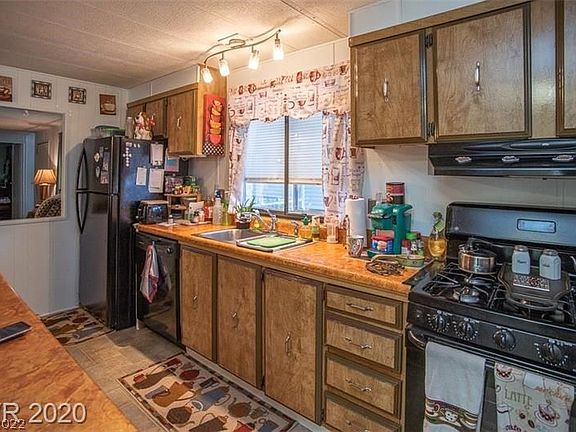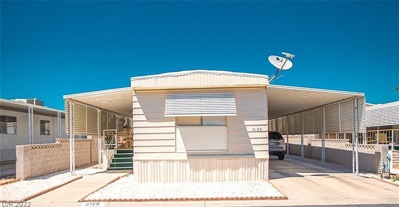 2 bedroom, 2 bathroom manufactured home in gated and well maintained 55+ community near to the Strip. The home is being sold in AS-IS condition and includes the washer and dryer, fridge, range, dishwasher, 2 sheds, an outside fridge, HVAC, and a swamp cooler. All convey with the purchase. The community features a pool, spa, exercise room, dog park, kitchen, meeting rooms, and more.