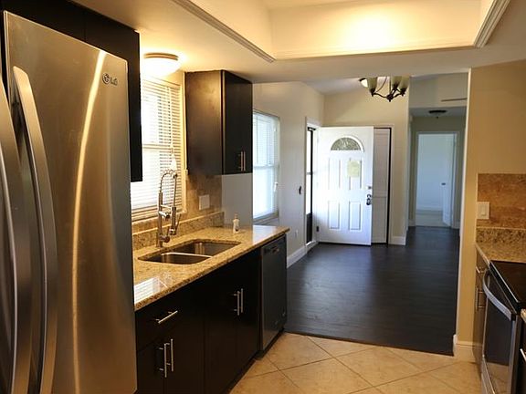 Completely remolded, brand new roof, brand new laminate flooring and new carpet in bedrooms, brand new showers, new paint inside and outside, new landscaping with St. Augustine lawn, windows have been changed through out the house, new stove, new microwave and newer french door LG refrigerator. Ceiling fans, private fence and added Florida Room.