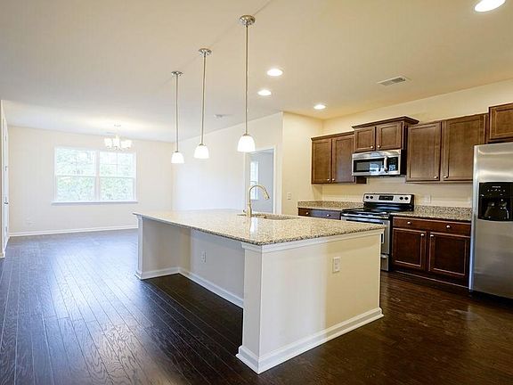 Very open floor plan with hardwood floors in the living area including dining room & kitchen. This home includes 36" staggered cabinets, granite countertops, walk in pantry, and stainless steel appliances in kitchen (including natural gas stove). Master suite has double vanities, tile flooring, a 5 foot shower, and walk-in closet. Nice covered porch and this home is in walking distance to the amenities. The Farm at Timberlake offers a pool, fitness room, open air pavilion/clubhouse and food prep room by the pool, playgrounds, fishing dock in one of the many community lakes, sidewalk/walking trails throughout! ***Pictures of home are of same floor plan in one of our other communities and are for representation only. ***Square footage and measurements are estimates and are to be verified by the purchaser.
