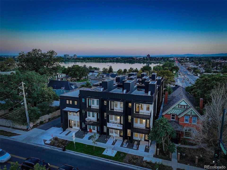 Welcome to this brand-new luxury townhome offering the best of Denver living with stunning views of Sloan’s Lake, the Rocky Mountains, and the vibrant downtown skyline. Thoughtfully designed across three levels, this home blends modern style with functional spaces, creating the ideal balance for both entertaining and everyday life. The main level opens with a versatile office accented by luxury vinyl flooring and recessed lighting—perfect for working from home or as a creative flex space—paired with a stylish powder bath for convenience. Upstairs, the second level serves as the heart of the home with an open-concept design where the family room and dining area flow seamlessly into the gourmet kitchen. The kitchen features quartz countertops, stainless steel Samsung appliances, a striking tile backsplash, and soft-close cabinetry, all illuminated by recessed lighting for a clean and inviting atmosphere. On the third level, the private primary suite offers a calming retreat with dual closets, recessed lighting, and a spa-inspired en suite bathroom complete with light gray soft-close cabinetry, quartz countertops, black accents, and a beautifully tiled walk-in shower. A secondary bedroom with an oversized closet also enjoys its own full en suite bath with a tub and quartz-topped vanity, making it the perfect guest suite or secondary living space. A conveniently located laundry area completes this floor, designed to maximize function without sacrificing style. Just steps from Sloan’s Lake, trails, and green spaces, and minutes from Denver’s best dining, shopping, and nightlife, this townhome blends modern luxury with a lifestyle that is truly unmatched. WELCOME HOME!