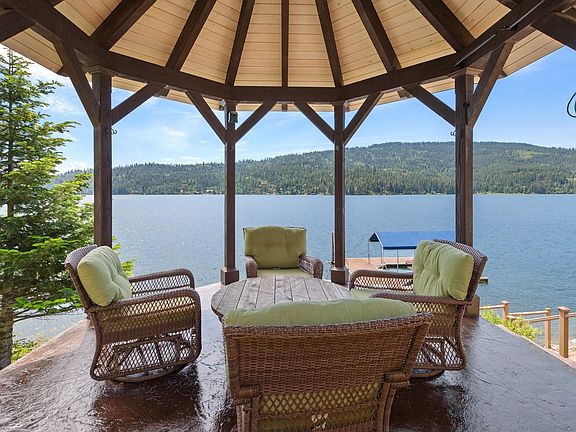 Rare Mica Bay Coeur d'Alene Lake beauty on a spectacular point with 105' of frontage. Open and easy floor plan for today's modern family! Boasting 7100 SF and 5 Bedrooms plus office, sewing, bonus room, rec room in a walkout lower level and master retreat suite on the main level. Timeless outdoor spaces with a fire pit, gazebo you'll love, grassy and sandy areas, a Dock, outdoor stone fireplace, and 180° Panoramic Lake Views. This one checks all the boxes and only 15 minutes to downtown Coeur d'Alene. Extraordinary beauty recently remodeled with the quality finishes you'll relish. Relax, unwind, enjoy life in your quintessential lake home. Make it yours to enjoy and make memories for years to come!