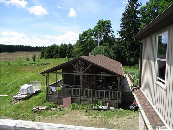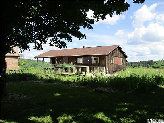 NY land bordering NYS land with cabin, shop, pond and mountain views for sale. This beautiful 54.1 acre property bordering NYS land is the perfect place to get away from it all or make it your permanent residence. The rustic 1066 sq. ft. cabin has 3 bedrooms, 1 full bath (wheelchair accessible), eat in kitchen and living room. Water is provided by a 180' deep private well and there's a private septic system. Outside there's a covered porch with a wheelchair ramp and a concrete driveway. The massive 44x80 shop is perfect for working on and storing all those "big boy toys". Featuring a concrete floor with radiant heat lines installed (a boiler would need to be added). The unfinished second story of the shop is accessed by elevator and would make a nice man cave or family rec. room. The property consists of about half tillable land and the rest is a mix of hardwoods and plantation pine. With over 1580' of road frontage, there's plenty of privacy and room to roam. All rights will transfer