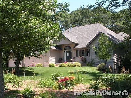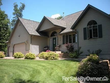 Just a quick 15 minute commute from Eau Claire WI on I-94, nestled back on a hill in a wooded lot, it is hard to believe this 4 bedroom (2 up and 2 down), 3.5 bath home has easy access to the city yet still feels like it is in the country. Waking up to deer grazing in the yard is one of the many pleasures associated with this 3800 square foot move in ready house. This home includes oak 6 panel doors, 2 gas fireplaces, 4 bedrooms (3 have walk-in closets), large windows that let in beautiful daylight, a sitting room off the front entrance, and an upstairs great room. Wood floors in the kitchen and dining room and newly laid ceramic tile in 1st floor laundry and downstairs bathroom creates an inviting space. The full size kitchen features a 6 person breakfast bar and dining space for a full size dining room table that allows for large group/family seating. The tray ceiling over the dining area adds an elegant touch. There are two large pantries in kitchen for added storage space. New dishwasher and washer and dryer included in house price along with refrigerator, wall oven and counter stove top. Like the rest of the house, the master bedroom/bathroom boasts of an open concept. The bedroom is large enough to host a king size bed and the bathroom has a spa jet tub. The room reminds the owners of a bed and breakfast they stayed at several years ago. The finished basement includes in floor heating and family room that is a great place to watch movies in the summer or winter or a Packer game in the fall. It has the 2nd gas fire place and much room for family and friends. There is an extra room in the basement that can be used for an office space, an exercise room, or a play room. Twelve zone sprinkler system installed in summer of 2010 along with a new security system that includes wired screens on downstairs bedroom windows for added parental piece of mind!This home also has a beautiful outdoor living space that was put in last summer that is connected to their existing deck. This is a great space to enjoy the peace and quiet of a warm summer night. Owners are relocating and would love to take this house with them. It could be yours if the price is right! Additional property info: http://www.forsalebyowner.com/listing/4N5WG?provider_id=28079