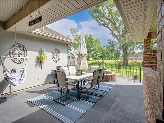 Enjoy peace and tranquility in this New Orleans / French Country home on a corner lot featuring almost 1/2 acre. This custom built home features a gorgeous courtyard/patio area for your morning coffee, a pass through carport with garage door, exterior dinette area with sink, built in outdoor speakers, under eve lighting, and an outdoor misting system to keep those hot summer days cooler. Beautiful double and triple crown molding frames up the interior and those tinted windows will aid in electric bills. A whole home generator will give you peace of mind during stormy conditions, and let's not forget that fully decked attic which practically doubles your storage area! This home offers a 1 year old HVAC system and is located in preferred Flood Zone X!