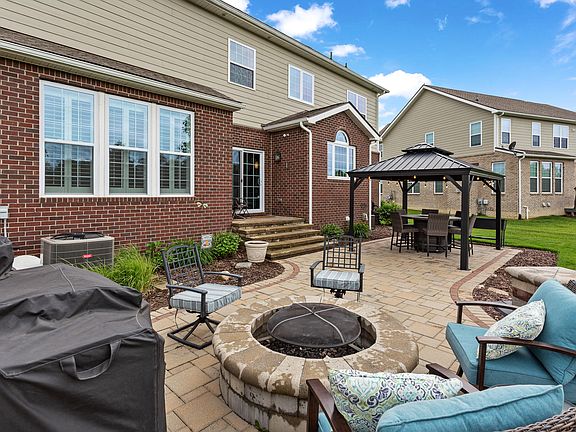 Welcome to this better than newly built home by Toll Brothers. It has everything you could want to your enjoyment-, lots of upgrades, premium lot with parklike area, Palladian kitchen with expanded footprint , granite, open workspaces, soft close cabinetry and crown molding . It opens to the family room with its stacked stone gas fireplace. Expanded living space is provided by the outdoor patio, gazebo and firepit The garage has an extra 10' of depth and epoxy floors. Mudroom off the garage entry provides an organized space for in and out the door items. Magnificent primary suite is a private retreat area with spacious vanities, walk-in closet with premier organizers, a tub and Euro shower and comfy space to reflect or relax. come to expect from Toll. Finally, the lower level is useful as is when the extra depth, but is plumbed for a bath and wet bar- in case you have finishes in mind.