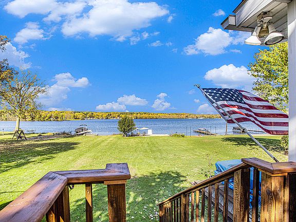 Welcome to your peaceful lakeside retreat on beautiful Thornapple Lake! This charming 2-bedroom, 2-bath home offers 1,668 square feet of inviting living space with stunning lake views. Enjoy relaxing mornings on the porch or cozy evenings by the water. The open floor plan creates a comfortable flow for entertaining, while large windows fill the home with natural light. Whether you're looking for a year-round residence or a weekend getaway, this property provides the perfect balance of comfort and tranquility. Experience the best of lakefront living with boating, swimming, fishing, and sunsets right from your own backyard. Highlights include two beautifully remodeled full bathrooms, kitchen with custom made birch cabinets and snack bar, natural gas fireplace, main-level pellet stove, tankless water heater, updated electrical panel, and cedar decking. Additional improvements feature all-new gutters with a lifetime transferable warranty, a sandy beach and large storage shed. This impeccably maintained lakefront property easily sleeps up to 12 guests making it perfect for entertaining and lakeside getaways blending modern comfort with the tranquilty of lakefront living in a natural setting. Call today to schedule a tour!