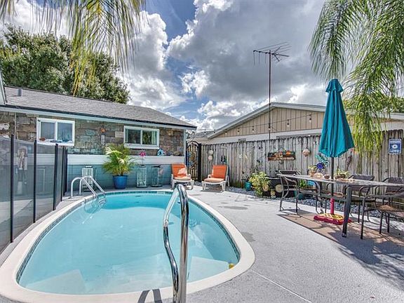 UPDATED, MOVE IN READY 2 bedroom, 2 bathroom, pool home, a rare find in the area. Once you enter through the front door, you will want this to be your next home. Open floor plan with plenty of room to entertain inside and out, the living room and spacious bedrooms with large closets feature laminate flooring. Open kitchen with wood cabinets, tile backsplash, granite countertops, stainless steel appliances, pantry, and breakfast bar opening to the dining area and family room with French doors leading to the privately fenced back yard oasis âEUR" a great area for relaxing and entertaining, enjoying a dip in the pool, hanging out at the tiki hut, sitting on the covered patio, or enjoying fruits and vegetables from garden beds. Enjoy sitting on covered front porch. Dual parking, one car garage and space to park a boat. No popcorn ceilings. No flood insurance. No HOA. Centrally and conveniently located close to schools, shops, restaurants, beaches, parks & more.