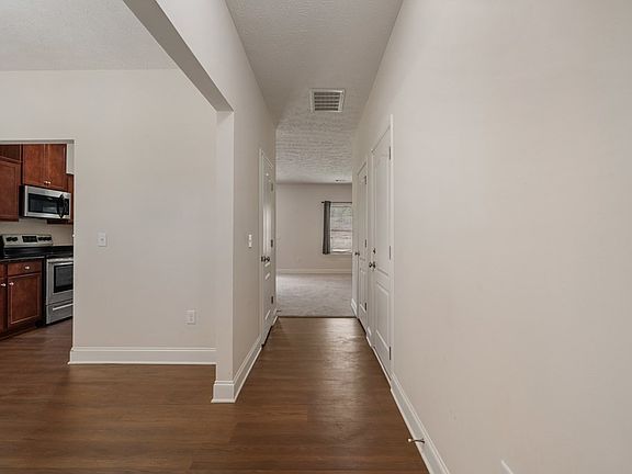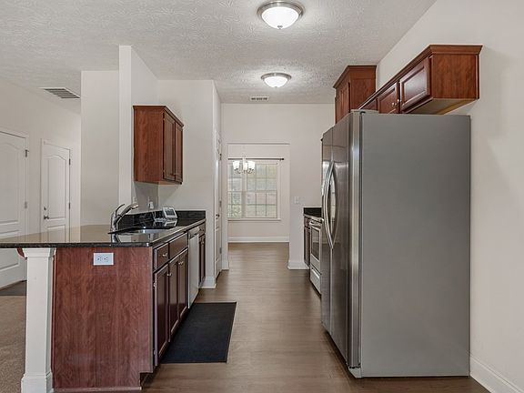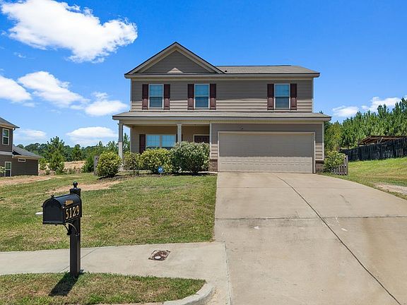 You're home! Upon entering this gorgeous open concept home you'll see the formal dining rm on your left (also makes great office space/playroom/formal living) which opens up to the kitchen. Downstairs also has a coat closet & powder room for guest use. The kitchen features stainless steel appliances, a rich granite that you'll find in the bathrooms as well, a breakfast nook and breakfast bar while providing an unobstructed view of the great room. Upstairs are the 4 bedrooms, 2 baths and laundry room. Primary bedroom features dual vanity, large walk in closet, soaking tub and separate shower. Enjoy the outdoors on the patio & fenced backyard, or on the covered front porch. New living room carpet and painted throughout in 2023. Seller is including fridge, washer and dryer, so all you need to do is unpack! Great neighborhood amenities like low HOA fee, clubhouse, pool, and lake access. Short apx 10 min drive to Fort Benning main entrance.