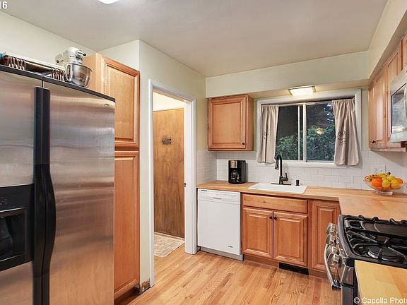 Development/Investor Opportunity. 0.48 acres zoned R5A dividable - up to 3 additional lots possible in fast-growing neighborhood. Possible ADU in basement - buyer to do due diligence. Butcher block counters. SS appliances. Wood floors throughout. New kitchen. Washer/Dryer hookups in garage and basement. 3 fireplaces. Great flow on main floor. Partially finished basement. Walking distance to Raymond City Park. Close to Springwater Trail.