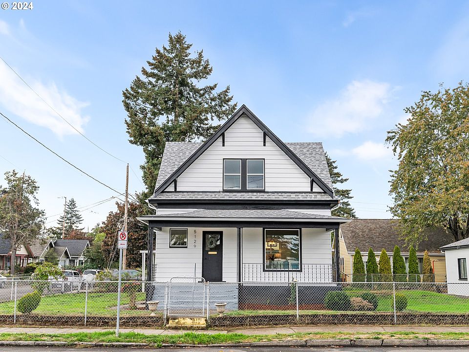 Step into this meticulously updated residence on an oversized corner lot and prepare to be wowed! The spacious covered front porch invites you to enter a bright and airy open concept floor plan. Expansive windows and lofty ceilings fill the home with natural light, creating an inviting atmosphere. The generous living room seamlessly flows into the well-appointed dining space, featuring elegant built-ins that add character. The light-filled kitchen is a chef’s delight, boasting custom white cabinetry, quarts countertops, an eat bar, stunning tile work, and gleaming stainless steel appliances. Upstairs, you’ll find three spacious bedrooms along with a thoughtfully updated bathroom that showcases expansive tilework and designer touches. The lower level offers additional space to make your own, complete with a bathroom and laundry area. This home beautifully blends modern updates with classic PDX charm. Outside, enjoy the extended driveway and carport, as well as a spacious fenced yard and an impressive + rare oversized shop/garage; separately metered + equipped with a full bathroom perfect for the home hobbiest or rent to supplement your income! Located in a phenomenal area with an impressive 97 BikeScore and 94 WalkScore, you’ll be just steps away from coffee shops, restaurants, shopping, and more. Don’t miss this incredible opportunity to own a piece of Portland paradise!