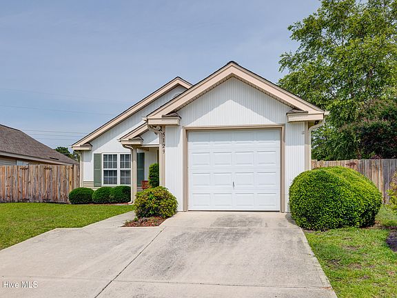 3 bedroom home in the Ogden area now available! This split bedroom floor plan has the primary bedroom up front while the 2 spare bedrooms are in the back of the home. The primary bedroom has its own full bathroom. A 2nd bathroom is conveniently located between the 2 spare bedrooms. The kitchen has white cabinetry, a glass top oven, dishwasher, & fridge that stays with the home. There's also a bar top that opens to the spacious vaulted living room. Sliding glass doors lead to the fully fenced backyard that is complete with a fire pit. Attached 1 car garage. The Sun Coast Villas neighborhood has a community pool, tennis court, & covered picnic area. The HOA also maintains the front yard. Short drive to I-40 & Mayfaire shopping center.