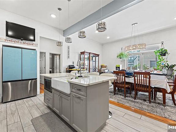 Rare 2-family gem with over 3500 square feet being delivered fully vacant in the highly sought-after Union City, just minutes from Manhattan. The first level features a spacious living room, dining area, modern kitchen, full bath, two bedrooms, and a private master suite with its own luxurious bath complete with a soothing jacuzzi tub and contemporary LED vanity lighting. Additional highlights include custom sliding barn doors, premium faux wood blinds, and sleek ceiling fans in every room. The top floor mirrors the first level without a master bath. A finished walkout basement provides additional living space with a large recreation room, full bathroom, laundry area, and an efficient humidifier to maintain optimal air quality year-round. This home also offers a private cemented yard, perfect for small gatherings, along with a two-car heated garage. A lifetime warranty on the siding—transferable to the next buyer—adds peace of mind. Located near the Lincoln Tunnel, this commuter's dream provides quick access to Midtown Manhattan, with multiple NJ Transit and private bus lines, the Hudson-Bergen Light Rail, and nearby ferry terminals ensuring seamless travel throughout New York City and New Jersey. Union City's vibrant shopping, dining, and schools are all within easy reach.