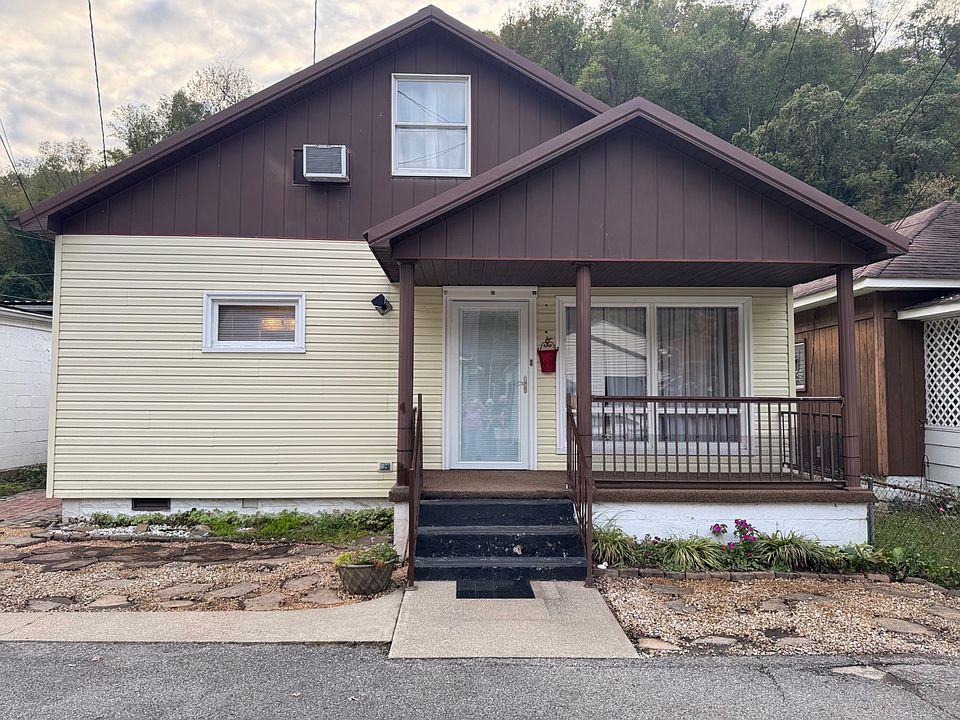 This home sits in the community of West Logan by next to the Police station. It has vinyl siding and a metal roof. City water and sewage. Has an electric fireplace in living. 3 bedrooms and two baths. Hardwood floors and a quaint small sun porch to back of home, with an in wall gas heater. It has gas heat and electric air. Lots of closet space. GS water heater. Stainless steel refrigerator. A microwave and kitchen stove.
