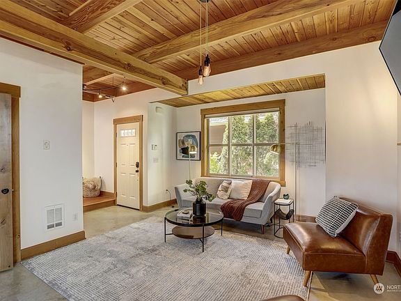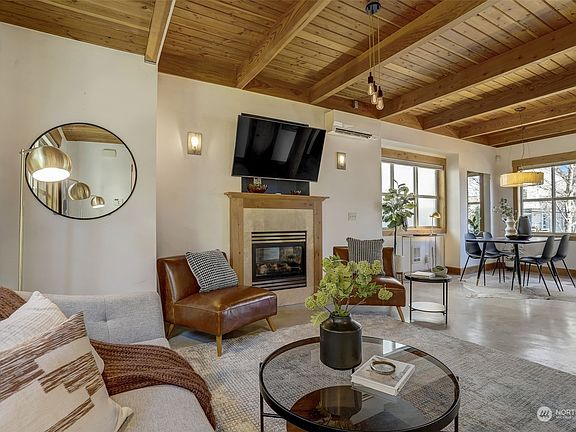 Industrial style Craftsman cottage oozing with rustic charm. This home features high ceilings, timbered rafters, concrete floors, and open concept living. Kitchen features gas cooking and stainless appliances. Kitchen door leads out to cute patio space. The two upstairs bedrooms each have cathedral ceilings and walk-in closets. Basement is completely finished and offers additional living space and lots of storage. Dedicated off-street parking space 513A, bike rack by front door. So walkable!! One block to cafes and shops in this great urban location. AC splits recently added on main and upper floors.