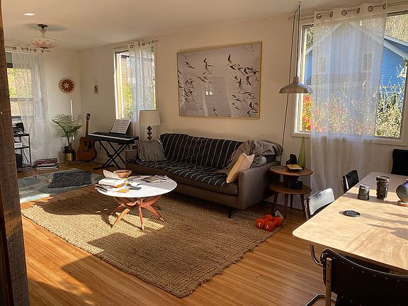 Sunny craftsman featuring, modern-Scandinavian interior design. This house, with a private drive, sits on a double-lot with fruit trees, river and bridge view, full basement, 2.5 baths, large windows, enclosed front and back porches, patio, garage with garden shed. This home is open and bright, with recently restored, original hardwood floors, freshly-tiled foyer, new light fixtures, fresh interior paint and brand new, energy-efficient kitchen appliances, new butcher-block counters and tiled backsplash. Regarding the grape arbor in the backyard, the grapes were grown from seeds brought back from Sorento Italy.