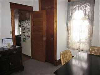 Great older home, lots of original woodwork, some etched glass windows. Maple floors under carpet. Newer kitchen cabinets. Vinyl siding 2000, shingles 99, deck 99. Hand built tiled jetted oak tub. Open front porch. New concrete floor in the bsmt. New plmb., newer wiring. Egress window in the bsmt. Formal Dining rm. New steel entry door. New Insulation, ceiling fans. Ceramic counter tops.