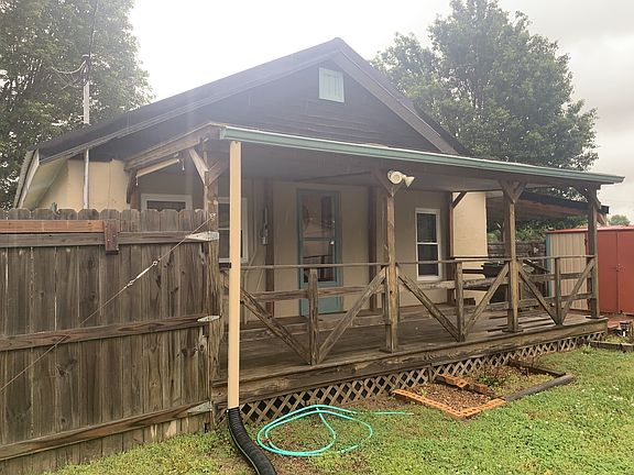 {{Please see private remark about offer review date Sunday May 21st}} Immaculate home with updates and a full set of appliances included. Metal roof only 3 years old. New laminate floors, beadboard ceilings and windows. Weatherproof electric breaker box and large carport added. Rocking chair front porch with colorful shutters and awnings. Back porch all under roof. Two dry storage buildings in back with fenced in yard. Could have alley access by adding a gate.