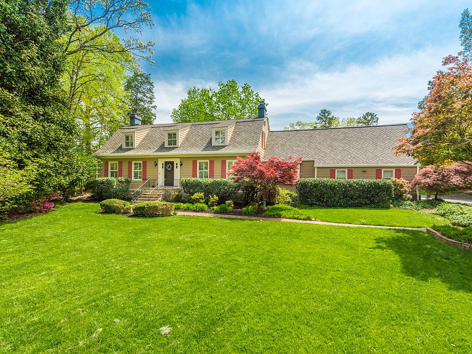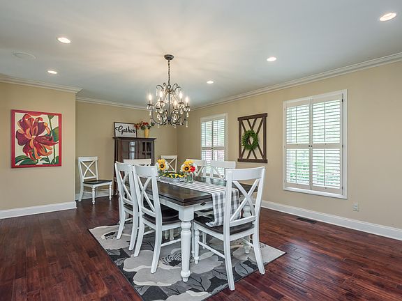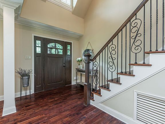 Life's better on a golf course! Gorgeous Cape Cod nestled on Fox Den's 8th fairway! Step inside the bright foyer & fall in love with the eye-catching hand scraped Brazilian Walnut floors. Skylights garner abundant natural light & the living room boasts custom built-in shelving. A huge island, Butler's Pantry, & wine fridge are the stars of the Gourmet kitchen. There's a glamorous master suite on each floor! Both are spacious with beautiful bathroom tiling, double sinks, & glass showers with dual heads. Wait until you see the fireplace & sunken bathtub in the main suite-talk about luxury! A large bonus room upstairs provides even more space. Outside, enjoy the serenity of the impeccable landscaping & babbling stone water feature from your covered patio overlooking the well-kept greens.
