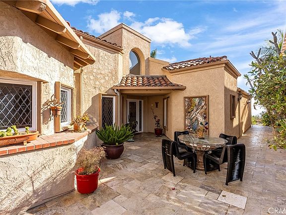 Welcome to your dream home at 513 Avenida Del Verdor in beautiful San Clemente. This stunning panoramic ocean view one level detached single-family house offers 2,420 square feet of luxurious living space, featuring three spacious bedrooms and three elegantly designed bathrooms. As you step through the private entrance, you'll be greeted by a bright and inviting courtyard which leads to an inviting entry. The home's interior boasts exquisite stone floors throughout and is beautifully illuminated by recessed lighting, chandeliers, and skylights, creating a warm and sophisticated ambiance. The gourmet kitchen is a chef's delight, complete with granite countertops, an island, and top-of-the-line appliances, including a gas oven and stove, refrigerator, and dishwasher. Enjoy entertaining in the formal dining room, or relax by the decorative fireplace in the inviting living area while taking in the spanning Pacific Ocean views! The main floor primary suite is a luxurious retreat, offering a private ensuite with a separate shower, marble accents, a steam shower, and a double sink vanity. Step outside to your private patio and the forever view yard, perfect for hosting gatherings or enjoying peaceful moments taking in the views. Additional features include owned solar, a laundry room with washer and dryer hookups, a security gate for peace of mind, and golf cart storage for convenience. This home is a true gem, offering elegance, comfort, and privacy in one of San Clemente's most desirable neighborhoods. Don't miss the opportunity to make it yours!