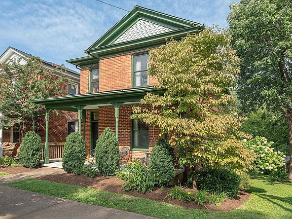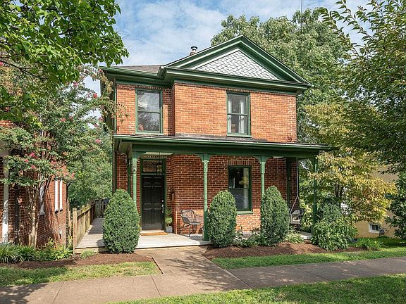 This 1920 home has been modernized and maintained in beautiful condition but retains its old house charm. The handsome Virginia red brick has aged gracefully. High ceilings and hardwood floors, classic trim work around doorways and fireplaces, side lights and transom windows above doors, ornamental railings, posts, and spindles are the details left out of modern homes. This home has all of that with a modern kitchen with granite counters and stainless appliances; a real primary bedroom suite with a walk-in closet and attached bath with stone tile and modern fixtures. Opened floor plan around the double sided fireplace in the living and dining rooms makes the living spaces feel modern but doesn't lose the classic feel of the home. Enjoy walking to concerts at the Pavilion, the farmer's market at IX Park, watching sunsets over the mountains from the upper level of the deck, or watching the world go by swinging on the covered front porch. Walk to restaurants on the Downtown Mall or in the popular hamlet of Belmont. Work from home on your high speed fiber internet in the lower level home office or quickly access I-64 or Route 250 to get to work, shopping, or out of town. There is alley access to the rear of the lot from Belmont Ave.
