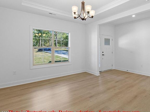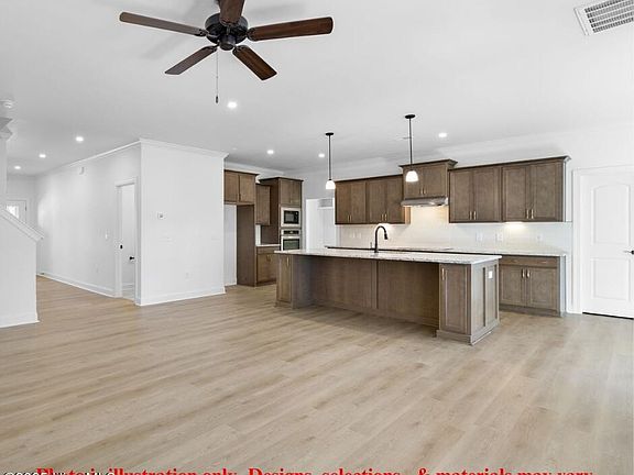 LVP, carpet and tile on floors, with wood stairs. Gourmet kitchen with wall oven and microwave. Photos show a similar property - selections on this one will vary.