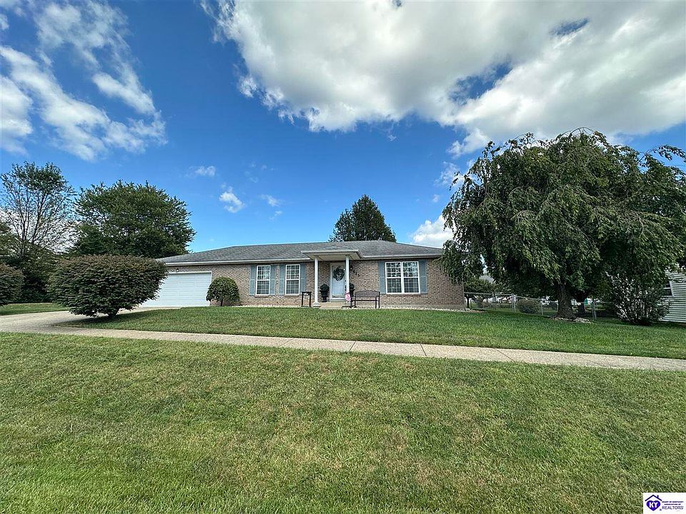 Don’t miss your chance to own this beautifully updated all-brick ranch in one of Elizabethtown's great locations. This meticulously maintained 3-bedroom, 2-bathroom residence boasts classic charm with modern upgrades, making it the ideal home for first-time. Upon arrival, you are welcomed by a spacious double driveway leading to a two-car garage. The beautifully curved concrete landscaping border adds an elegant touch, guiding you to the inviting front porch. Step inside, and you will immediately appreciate the thoughtful design and attention to detail throughout. The expansive living room is bathed in natural light and showcases a neutral, contemporary color palette, creating a warm and welcoming atmosphere. At the rear of the home, the dining room impresses with a sophisticated trimmed feature wall, offering a perfect space for both casual family dinners and formal gatherings. Adjacent to the dining area, the updated kitchen features sleek tile backsplash, pristine white quartz countertops, and ample cabinetry—designed with both function and style in mind. The split floor plan provides a private primary suite, offering a peaceful retreat on one side of the home. The two additional bedrooms, located on the opposite side of the kitchen, share a well-appointed full bathroom, providing comfort and convenience for family or guests. The outdoor living space is equally impressive. Step through the dining room’s sliding glass doors and onto a spacious covered deck, ideal for entertaining or relaxing. The fully fenced backyard is expertly landscaped and features paver walkways, a playset, and a trampoline—all of which will remain for the next owners. A generously sized storage shed further enhances the practicality of this well-rounded property. This home truly offers it all—a prime location, thoughtful updates, and a welcoming ambiance both inside and out. Schedule your private showing today and take the first step toward making this extraordinary home your own.