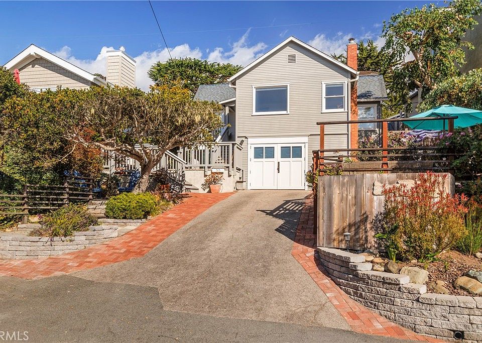 Nestled in picturesque Happy Hill in Cambria Pines Estates, this enchanting 1930s New England-style clapboard cottage offers a seamless blend of timeless charm and modern convenience. Lovingly updated, the home retains its vintage appeal while incorporating thoughtful contemporary touches. Inside, enjoy airy, light-filled spaces with sweeping ocean views from the kitchen, dining room, living room, and master bedroom. A newly added balcony offers a serene setting for taking in stunning sunsets over the Pacific. Both bedrooms open to an enclosed dog run and a peaceful back patio, creating an effortless indoor-outdoor flow perfect for pets and relaxation. Beautiful new double-hung windows welcome in the cooling ocean breezes on those warm sunny days on Happy Hill. Open the architecturally appealing carriage house doors to the existing one car garage and see the possibilities of an additional flex space for a workshop, art studio, home office, or a space that works with your desires. Surrounded by lush gardens and tranquil walking paths, this unique retreat invites a relaxing and tranquil lifestyle. Whether you’re searching for a charming full-time residence or a peaceful coastal getaway, this cottage has it all. Already established as a successful vacation rental, it offers the option for income potential. Don’t miss this rare opportunity to own a piece of paradise on California’s Central Coast. Welcome home!