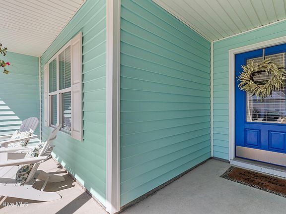 Beautifully maintained and move-in ready, this 3 bed, 2 bath home offers over 1,700 sq ft of comfortable living just minutes from Carolina Beach. The open floor plan features a spacious living area with wood flooring and a sunroom perfect for relaxing with your morning coffee or evening beverage. The kitchen boasts stainless steel appliances, bar-height counter seating, and ample cabinetry. The large primary suite includes a walk-in closet, tile shower, separate soaking tub, and a versatile sitting room ideal for a home office or nursery. Enjoy outdoor living on the back deck with built-in bench seating, overlooking a fully fenced backyard with irrigation. Additional features include a laundry room with built-in cabinets, 2-car garage, gutters, 2'' blinds throughout, and community sidewalks perfect for evening walks.