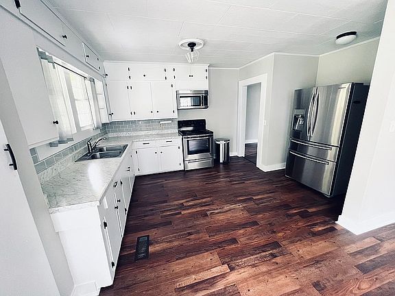 Headland charmer! Sitting on a large 1/2 acre corner lot just steps from the square in Headland, within walking distance to schools. This 2 bed 1 bath home features a huge eat in Kitchen with stainless steel appliances. Brand new LVP flooring throughout, no carpet! Just off the kitchen is a space that could be used as an office, mudroom, or expanded pantry. Fresh paint! House is move in ready! *Buyers agent welcome at 2.5%