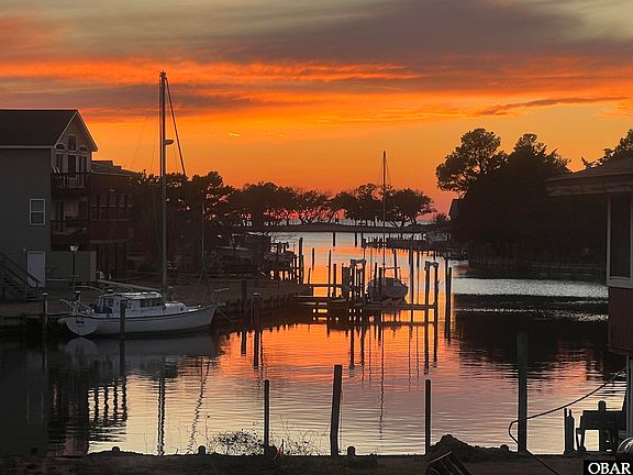 Beautiful NEW CONSTRUCTION!! Absolutely gorgeous canalfront location with expansive views of Baggala Inlet! Enjoy the spectacular nightly sunsets glowing straight down the inlet!! PRIME waterfront location just a minute to the marina and the sound by boat! 56 feet deep water canal frontage w/pier in place! Lovely low maintentance two-story home in the gated community of Colington Harbour! Open concept living on main level w/bright & sunny great room, dining and spacious kitchen! Large kitchen island w/lovely granite counter tops, functional cabinets, pantry and stainless steel appliance! Power room & washer/dryer area also on the main level. Large waterside deck! The primary bedroom w/private bath w/double vanity and walk-in closet is on the top level.  Two additional bedrooms are also on this level along with a second full bath.  Convenient dry entry, workshop/storage area plus outdoor shower!  Located super close the the community amenites! EXCELLENT ELEVATION! FLOOD ZONE X!