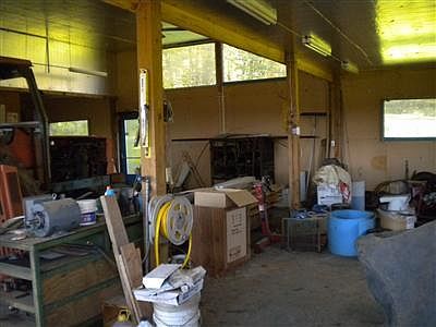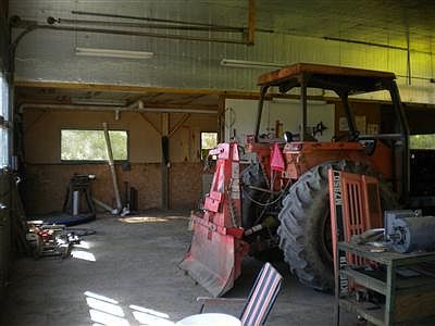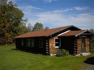 Great 2-BR, 1 bath log, ranch style home with OPEN FLOOR PLAN. Mudroom, great rocking chair front porch. PLUS..44' x 36' HEATED garage with oversize OH door. SUPER FOR THE HOME-BASED BUSINESS. Has 10'x 16' storage bldg. ALL ON 2 acres with hillside views.