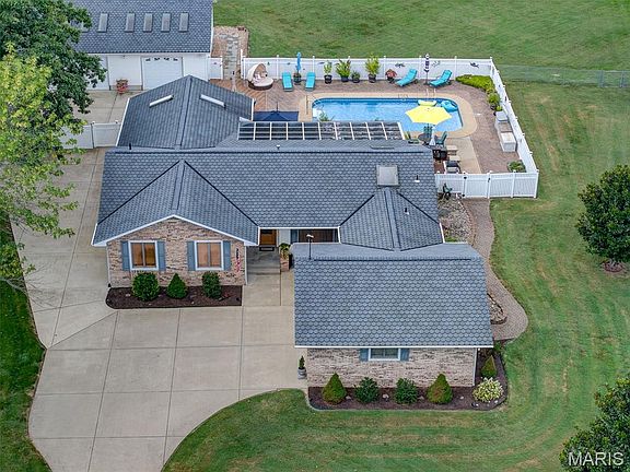 STUNNING PROPERTY WITH BLEND OF COMFORT, UPDATES, INGROUND POOL AND 5 CAR GARAGE SPACE! Step inside and you will immediately feel at home! Beautifully updated kitchen featuring large center island, Quartz Countertops, stainless appl, cabinet lighting, vaulted ceiling, skylights, large pantry and a see through aquarium! From the kitchen you will step into a spacious All Seasons Room with laminate flooring, hot tub, TV that stays and overlooks the backyard oasis! Formal dining area is open to living room. Main floor laundry with 1/2 bath. Primary bedroom w/skylight, vaulted ceiling, walk in closet and updated ensuite with walk in shower with body jets and towel warmer! Dedicated office room with built in cabinets and solid surface counter! If you work from home-you will LOVE this! Bedroom 2 and 3 w/LVP flooring separated by a hall bath. Lower level is mostly unfinished, but does have a small finished bonus room and storage area w/worktable, TV and gun safe-that stays! Perfect place to have a large gathering and relax around the inground pool! Pool area is fenced with a vinyl privacy fence with lights and includes a dedicated grill area with natural gas hookup. Car enthusiasts and hobbyists will LOVE the oversized 20x33 detached garage with 9x17 bump out, three doors, skylights, can lights, heated with 1/2 bath! Grape vines (red and white) towards the back of the property! Fire pit and raised garden bed. So much more! Ask your agent for a list of upgrades and add. info!