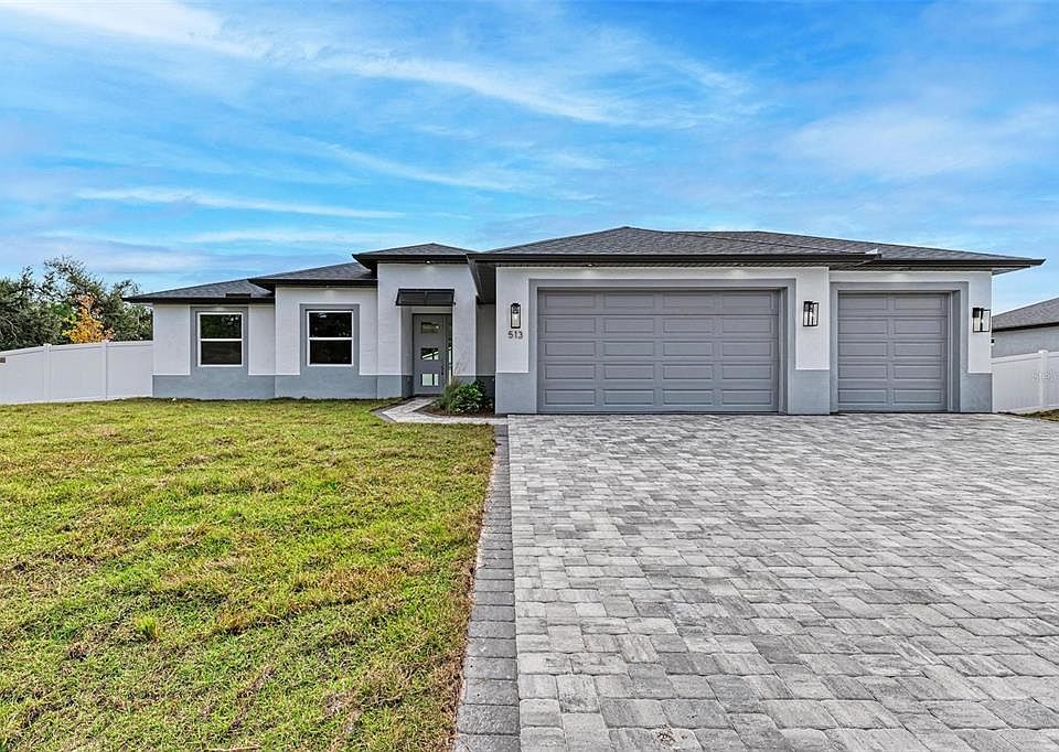One or more photo(s) has been virtually staged. (Under video surveillance) MOVE-IN READY. NEW CONSTRUCTION. Welcome to the stunning 3-bedroom, 2-bathroom residence featuring a 3-car garage and a dedicated office/den space. Meticulously designed for a perfect blend of sophistication and functionality, this home offers a lifestyle of comfort and leisure. The open-concept living area features modern porcelain tiles, a beautiful coffered ceiling, and a cozy fireplace. A large sliding door seamlessly connects the interior to the spacious lanai and backyard, creating a harmonious flow between indoor and outdoor living. The kitchen is a home chef’s dream, offering accent herringbone backsplash, spacious quartz countertops, and stainless steel appliances. Modern light fixtures add a touch of chic to this culinary space, making it an ideal setting for both everyday meals and entertaining guests. The bedrooms offer a cozy retreat with vinyl flooring and spacious closets. The oversized bathrooms showcase large format tiles, glass enclosures, and a rejuvenating rain shower in the master bathroom – a perfect retreat after a long day. Practical features abound, including an oversized laundry room, full gutters, water filtration, and a well and septic system. To underscore the quality of construction, this property comes with a 10-year structure warranty, offering assurance and confidence in your investment. Safety is paramount with hurricane-impact windows, providing not only security but also contributing to lower insurance estimates. Elevated above flood zones, this home is strategically designed to ensure peace of mind. Situated on a fenced-in corner lot, this property is designed for outdoor living, with enough space to place a pool. Pavers in the front and back enhance the curb appeal. Don't miss the opportunity to make this exceptional property your home. Schedule a private viewing today and experience the pinnacle of contemporary Florida living in Venice, FL.