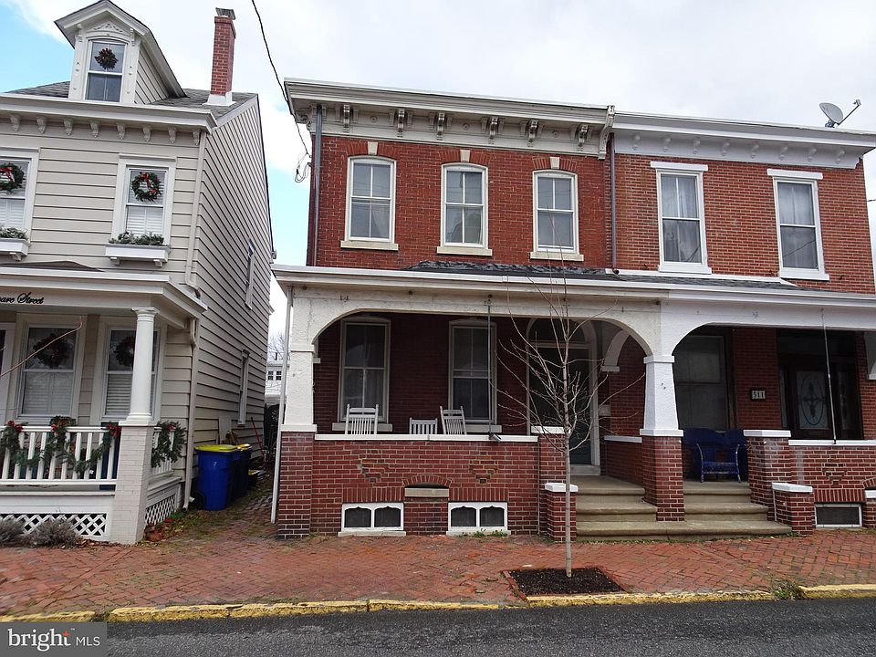 This 4 bedroom, 1.5 bath all brick twin located in Historic New Castle is in need of some updating and is priced accordingly in addition to being "as is". A large covered and inviting front porch greets you; continue through double door with transom into vestibule. Home has a lot of original features, 10' ceilings, moldings, pine floors, pocket doors, tin ceilings. First floor has 3 rooms, plus fully equipped kitchen and a half bath. The second floor has 4 bedrooms, and a full bathroom. The basement houses all systems and laundry. The back yard is fenced and has 2 garages that are accessed from Cherry Street. Perfect opportunity for an investor or an owner occupant that wants to build some sweat equity.