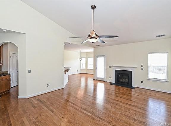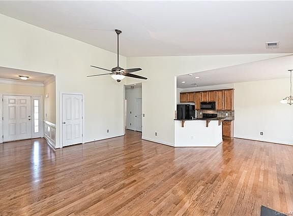 Ranch home in very popular neighborhood. This one story 3 bed, 2 bath home features a highly sought after split floor plan. Gleaming hardwood floors great you at the foyer and carry through the family room, kitchen, breakfast/dining area, and halls. The kitchen features granite counters, tile back splash, tons of counter space and a brand new refrigerator. The spacious family room is perfect for relaxing and features a cozy fireplace. The huge master suite boasts wood flooring, trayed ceiling and comfortable master bath complete with garden tub and separate stand up shower. Two guest rooms on the other side of the house provides everyone privacy. Large fenced back yard for private outdoor time and enjoying the beautiful NC evenings. All located in a neighborhood with no HOA and is close to malls, restaurants, shopping, entertainment and very close to highways for easy drive to Charlotte, airport, and lakes.