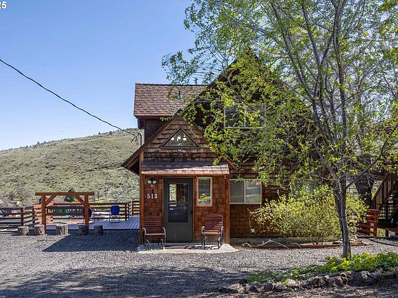 Cozy Deschutes River Retreat! Welcome to your rustic riverside escape in the heart of Maupin. This charming 3-bedroom, 2-bath fishing cabin spans 2,300 square feet on a spacious and versatile 0.32-acre lot, offering sweeping views of the Deschutes River and its breathtaking canyon backdrop. Perched above the river on a quiet bluff, this home is designed for nature lovers and anglers alike. Enjoy sunrises over Bakeoven Creek Draw while sipping coffee from your deck, or stroll down the access road for direct river entry. You’ll have access to 7 miles of public river upstream to a locked gate and an incredible 28 miles of public access downstream all the way to Macks Canyon. Inside, the home exudes rustic charm with warm cedar details throughout, large picture windows framing the ever-changing river and canyon landscape, and an open-concept main living space. Two bedrooms are located upstairs, while a cozy downstairs bedroom and a large family room, and bar offer additional living and entertaining space. Step outside to your private gazebo—perfect for picnics, bird watching, or simply soaking in the river view. The oversized lot includes a detached garage and plenty of off-street parking for up to four additional vehicles. There’s also ample space for gardening or expansion. With potential to divide the lot or build an additional structure above the home (buyers to verify with the City of Maupin), the opportunities here are endless. This home comes furnished and ready for your next adventure—whether you're a full-time resident, seasonal angler, or weekend escape artist. Friendly neighbors, walkable access to town, and the soothing sounds of the rapids complete the picture. Come experience the serenity, history, and timeless beauty of this one-of-a-kind Deschutes River cabin.