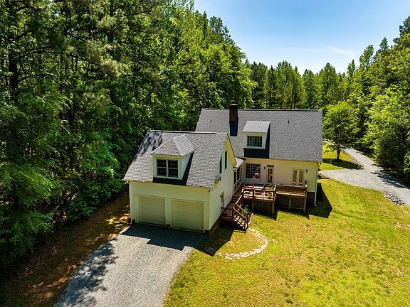 Retreat to your 14+ acre oasis in the beautiful forests of Orange County. You may feel you have been transported hundreds of miles away from civilization but that's not the case here! Just 15 minutes to downtown Carrboro/Chapel Hill. Huge welcoming front porch, two story family room filled with light, wooded views out over window. Popular Cape Cod design with a finished space (with full bath) over the garage gives the owners many different living and work from home zones. Every bedroom has a private bath. Storage galore throughout! Huge bedroom closets. Spacious back deck complete with screen porch. Acreage is mostly wooded with large front yard cleared. Horses welcomed! Don't miss virtual tour!