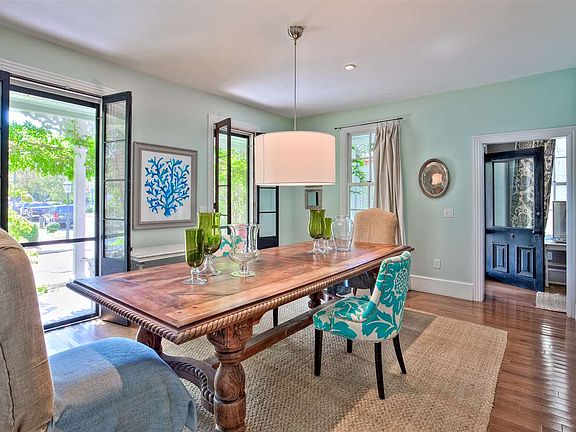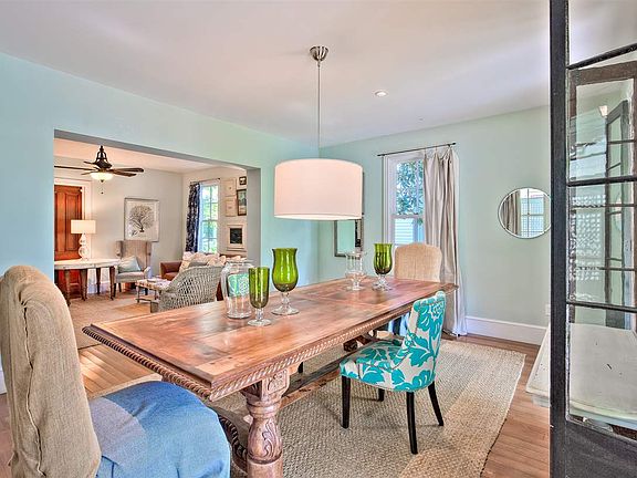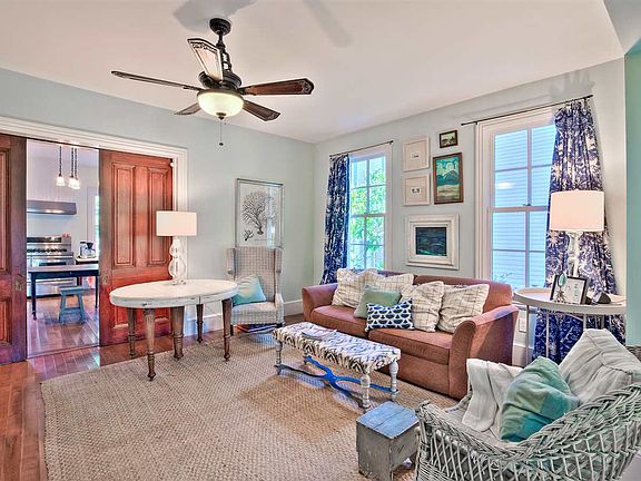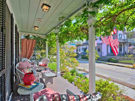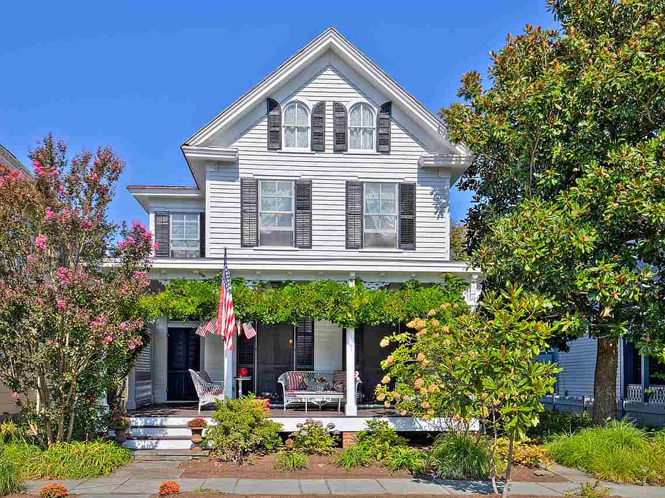 The Franklin House, looking straight up historic gas-lit, tree-lined Hughes Street, was built in 1876 by Alfonso S. Bennett. With only two prior families owning this property., the current family renovated and restored this property with pride as it was gutted, lifted, stripped, and refurbished with new Marvin wood windows, new electrical wiring, plumbing lines, gas piping, cable wiring, and ductwork throughout. Using historically appropriate materials and fixtures as well as refinishing many of the original furnishings and fixtures blending old and new in a simple, fresh, classic result. The grounds are a blend of victorian-era plants such as a fern garden and southern magnolia trees, mixed with refreshed blue slate walkways and crushed shell and blue stone-ground coverings. With two porches, a summer porch room, a replicated garage structure, and intimate landscaping, the grounds are conducive for peaceful individual reflection as well as fresh-air group gatherings. The summer kitchen is simple with a large pantry and boasts a separate two-story space that is its own retreat or extra living space. Occupied so kindly call for an appointment. Associated Docs has an improvement list and inventory. 2-3 car parking in back.
