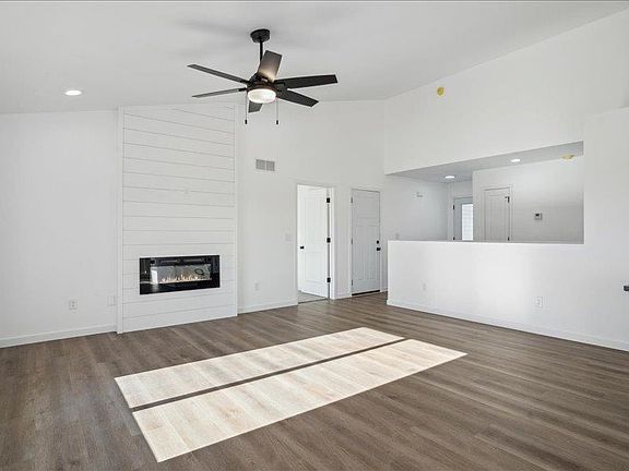 This newly constructed ranch home offers 5 bedrooms and 3 bathrooms, with nearly 2,500 square feet of living space. The main level features luxury vinyl plank flooring throughout the kitchen, dining area, and living room. Enjoy the ambiance created by two electric fireplaces—one located in the living room and the other in the family room. The kitchen is equipped with quartz countertops, white-painted cabinets, and matching trim and doors. It also includes a large island, a pantry, and a 10x10 deck that is accessible from the dining area. The master suite features a walk-in closet and a bathroom with a fully tiled shower. The spacious lower level includes an inviting family room.