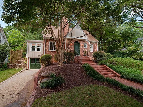 Classic 1938 built calico brick bungalow in walkable University Park. Living room has gas log fireplace, built-in shelves and window seats. Basement Family room is the perfect spot for TV and/or recreation area. Home was remodeled in 2006 with addition of main level master suite, office space and large eat-in kitchen. This stunning kitchen has 64" X 50" walnut block island top with seating space and microwave hutch, Viking cook stove and Kitchen Aid appliances, Black granite tops and creamy white cabinets with windows on 3 sides. Upstairs, we have 2 bedrooms and 1 bathroom. The Basement has Family room, drop zone, laundry and tons of storage in dry walk out basement. Don't miss the Hidden Door in Family room, it leads to the nice storage room with sink and circles around to laundry. Additional storage room is under office may have been a garage when home was built. Isabella Cannon Park is within visual distance, the Village District and Hillsborough Street are several blocks away.