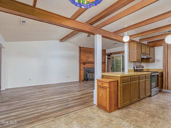 Welcome home to 513 Gene Drive - an open three bedroom / 2 full bath brick home just minutes from Cherry Point. The interior of this home has just been professionally painted, has a new water heater, ready for its new owner. The brick home offers LVP flooring, tile, and vinyl flooring, stainless appliances, primary bedroom with ensuite bath, garage and rear fenced yard. Open concept allows great space for family gatherings, entertaining, and functional use of space. Kitchen expands to dining area and living area so all can enjoy. Cozy up to the fireplace, pop out to your fenced yard and rear patio. Laundry/mud room off garage entrance for convenience. This one is move in ready and waiting!