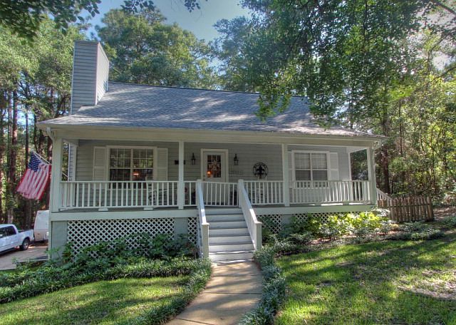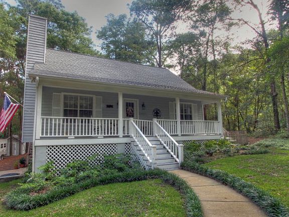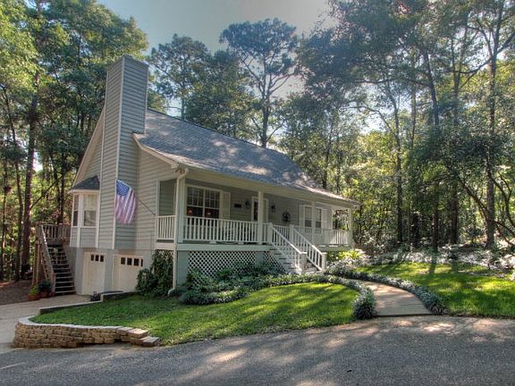 Nearly 1 acre lot within walking distance of bay and downtown Fairhope. Nestled in the trees on a private cul de sac. this cottage has a huge deck (27x19) and plenty of entertaining space. There is a large basement (27x11) area that would make a great media room or office. The kitchen has been updated and has a walk in pantry. Large workshop/storage building in backyard. Rare opportunity to gave large lot and privacy in town. New Carpet in Master Bedroom.