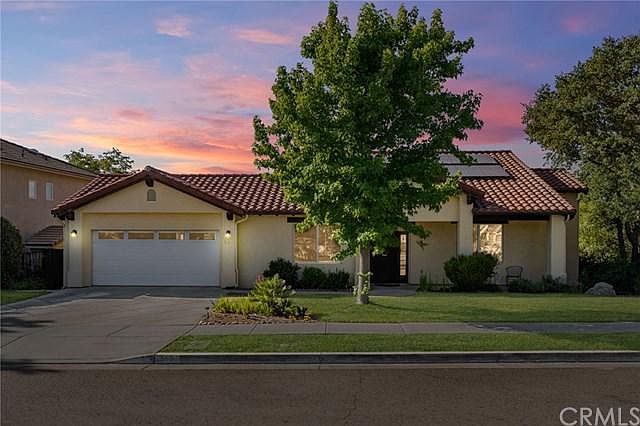 SINGLE LEVEL SEMI-CUSTOM IN SHADOW CANYON ESTATES! If you like views, then you're going to love this Spanish influenced beauty, ideally located near schools, shopping & golf! True - the 2,100 SF 3 bedroom, 2 bath floor plan is not as large as some. But what this home lacks in size, it more than makes up for in views, character and tasteful upgrades. The seller LOVES the fact that the entire living area and outdoor entertaining area is beautifully elevated, but without steps to contend with. They also love the park-like side yard, with plenty of mature oaks providing a picturesque setting best viewed from the kitchen, dining and covered front porch. Granted, there are steps down from the expansive decking to the rear yard... but going down to the lower rear yard is purely optional with limited landscaping to maintain there. Browse the photos and note the abundance of upgrades and features, from the security screen door in front to the sun-shaded covered decking in the back. Custom flooring to vaulted and volume ceilings. And the kitchen is a dream, with its newly installed stainless appliances accented by both recessed and under-counter lighting. Plus, there is a HUGE center island creating the perfect hub for entertaining family and friends alike. Don't miss the upgraded custom fireplace - it is both beautiful AND highly efficient! And speaking of efficient, how about an electric bill of only $120/mo thanks to the roof mounted solar! Please check out the virtual tour & video!