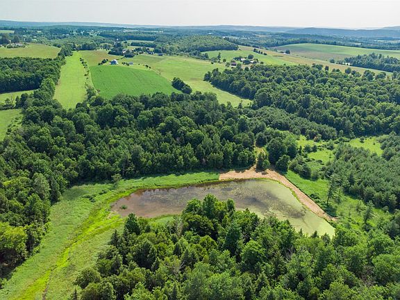 Own your own lake! This 3200 sq ft, 5 BR, 3 1/2 BA colonial sits on the perfect spot on this beautiful surveyed 81.05 acre property with, yes, it's own 5 acre lake. This piece of real estate has it all. Gorgeous views, 888 feet of road frontage, approximately 40 acres of tillable land with corn and hay currently being raised by a neighboring farmer, and approximately 40 wooded acres with tremendous hunting and fishing and every other outdoor recreation you can think of without leaving your own property! Swim and fish in the summer, ice skating/hockey in the winter. What beats that! 30' x 30' garage with hydraulic car lift included, 26' x 40' pole barn for the toys or animals. Long driveway and road frontage ensures total privacy. Drone video coming soon!