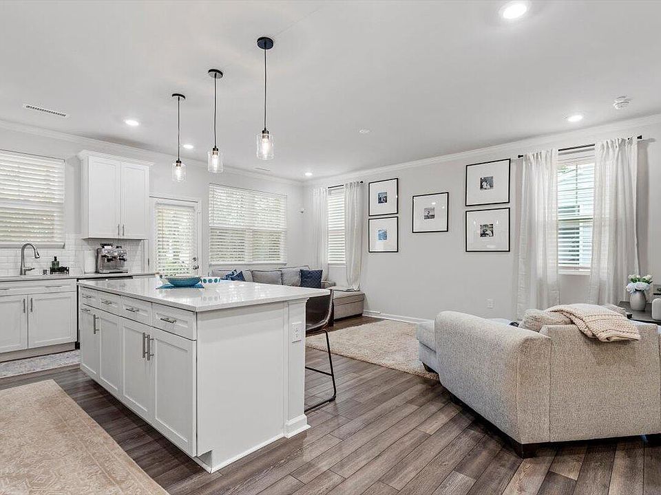 This modern end-unit townhome, built in 2022, offers 3 bedrooms, 2.5 bathrooms, and a one-car garage. The open-concept main level is filled with natural light, creating a bright and welcoming living space. A private back patio, bordered by trees, provides the perfect spot to relax or entertain. The home comes complete with a gas range, dishwasher, refrigerator, and washer/dryer—making it truly move-in ready. Enjoy community amenities including a pool and playground. Conveniently located just 5 minutes from The Avenue at White Oak, you'll have shopping, dining, and entertainment right at your doorstep.