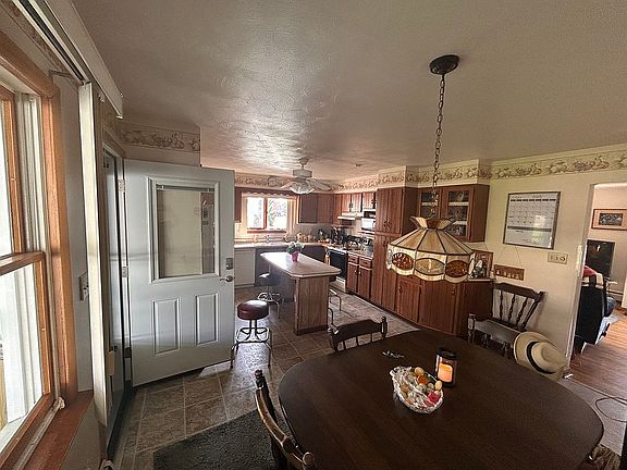 The main floor has a nice sized kitchen and dining area, living room and full bath. The main floor bedroom has a large walk-through closet to the laundry area with lots of storage and space for an upright deep freezer or refrigerator. The upstairs boasts more storage areas, including a spacious front walk-in dormer and has two bedrooms and a full bathroom. The basement has a nice sized family room with a brick, gas fireplace and a separate workbench area with ample shelves for all of your projects. A separate area in the basement includes more storage shelving and a toilet shower and sink that could be upgraded and even turned into another bedroom/full bath if desired. The natural gas furnace provides heat through hot water baseboard. The basement has an outside entry door up steps to a large covered back porch off the kitchen entry door. There is a two car paved driveway into an oversized two car detached garage all sitting on a nice level lot.