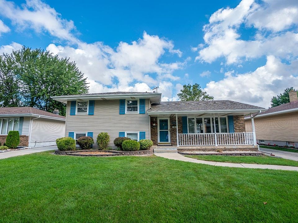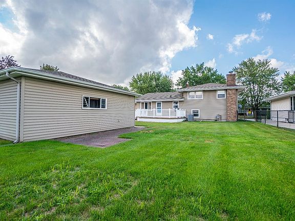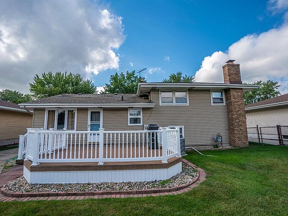 Location! Location! This solid, well maintained 3 bedroom 2 bath quad is located 1/2 mile from the IL state line and conveniently located to shopping. Main level remodeled in 2022 with new kitchen cabinets, quarts countertops, laminate flooring, and recessed lighting. Masonry wood burning/gas fireplace. All bedrooms have hardwood flooring. New Anderson windows installed in 2021. Maintenance free composite deck. Covered front porch.