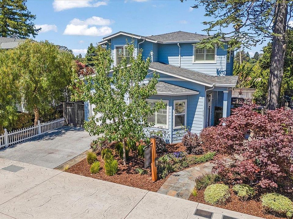 This newer contemporary Craftsman blends classic style with modern comfort. Tucked in a quiet enclave of four homes, dappled sunlight creates a peaceful, private setting. Dramatic vaulted ceilings welcome you into a bright living area. What's not immediately obvious are the thoughtful, high-quality upgrades throughout: brand-new solid wood doors with upgraded hardware, fresh interior paint, and luxurious, newly renovated high-end bathrooms. Each bedroom features custom closet built-in systems, and the home includes a high-volume water filtration system. A sleek zero-clearance gas insert adds warmth and style to the family room. The primary suite offers a quiet escape with a remodeled bathroom featuring a custom floating white oak vanity, a luxurious tub, quartzite counters, and soft ambient lighting for a spa-like feel. The outdoor space is ideal for entertaining or relaxing in the garden, with seamless indoor-outdoor flowperfect for BBQs, gatherings, gardening, or letting pets roam. Just a short walk from Gayles Bakery, Capitola Village, the gym, beach, and local shops, this home has a rare mix of comfort, convenience, and coastal charm. Its move-in ready, offering a lifestyle in one of Sunset Magazine's Favorite Beach Towns, Capitola.